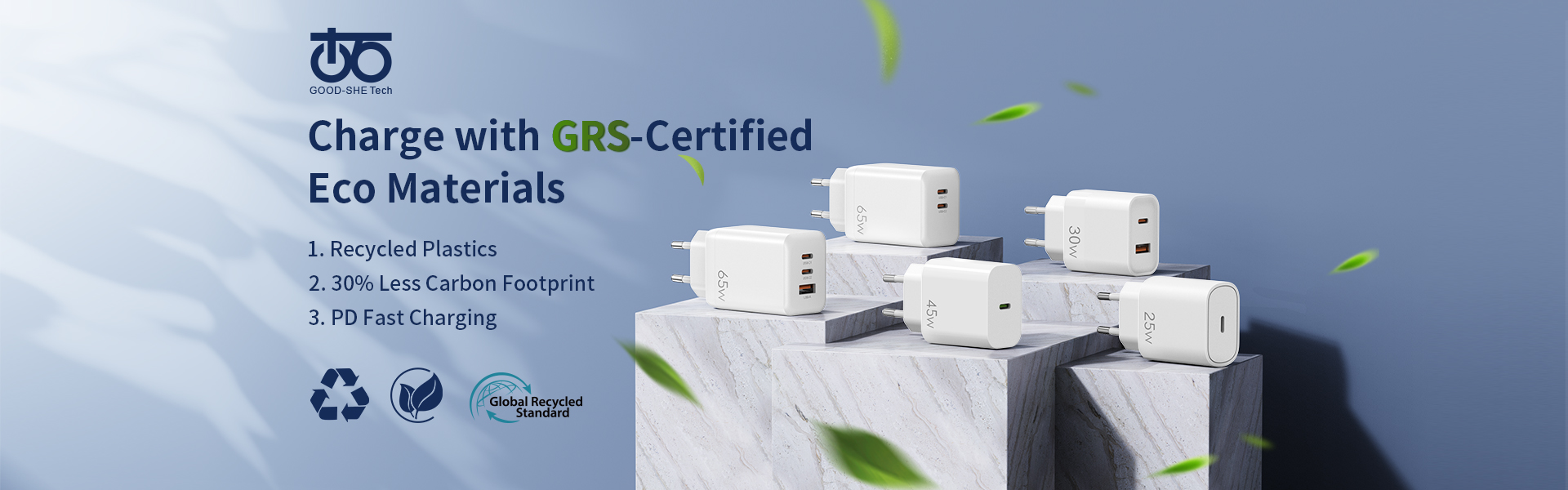 Good-she Tech was founded in 2008 based in Shenzhen and integrated with R&D , production , distribution power adapter, Universal travel charger, USB charger, car charger, wireless charger etC. With 10-year practical experience in this line of business. And factory approved by IS09001-2015 certificate and got authorization of east charge technology of OPPO VOOC. Moreover in hardware pars, good-she tech has the entire safety standard test equipments to ensure it’s quality from raw material to finished products . We are members of the USB-IF Association and get PD3.0 and QUALCOMM 3.0 certification .Most of the wall chargers have passed CCC/UL/ETL/GS/UKCA/BSMI/ PSE /SAA /C...